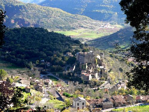 vue sur Dio et son château. Panorama sur les Monts d’orb,